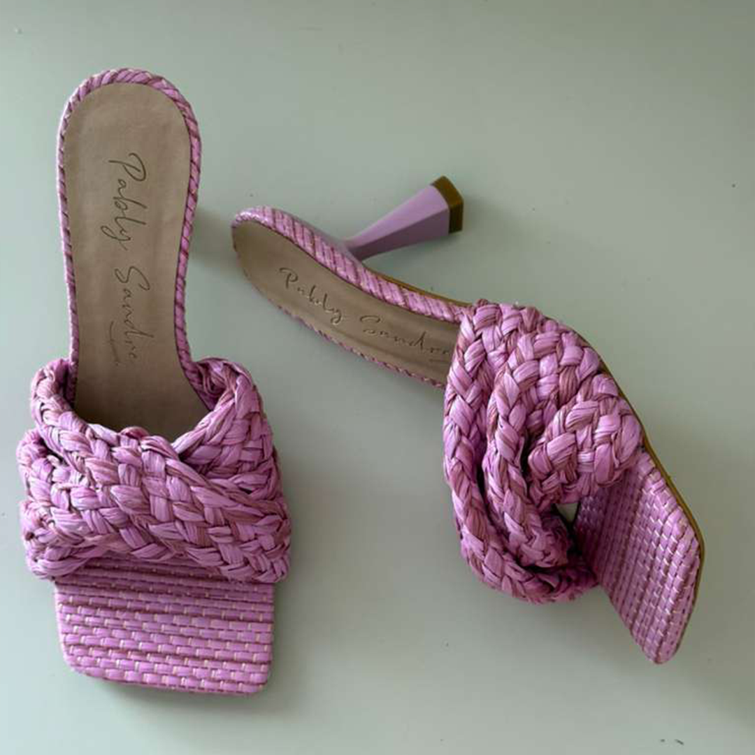 Open mule handmad salto intermediário. Disponível em três cores: Nude, preto e rosa.